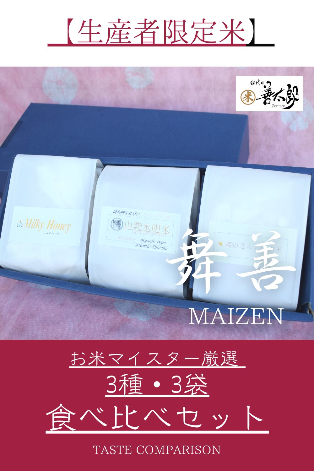 舞善~MAIZEN~【食べ比べお米ギフト3種3袋】☆お米マイスター厳選・生産者限定米・3合×3袋・化粧箱入り